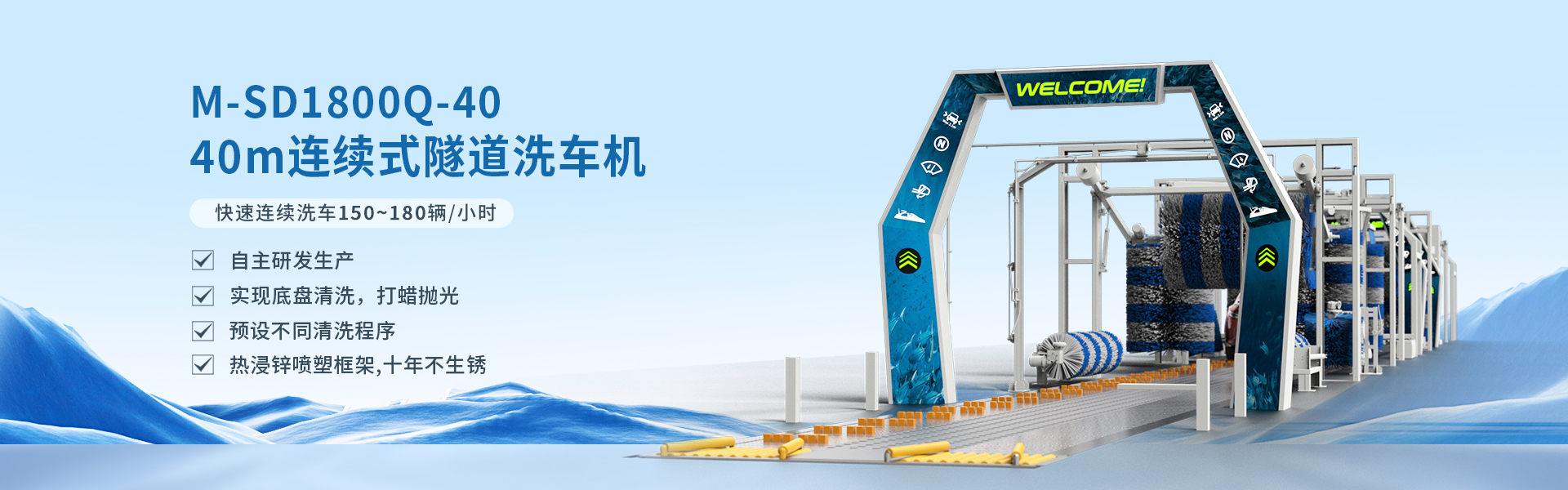 隧道連續(xù)式洗車機M-SD0900D全自動洗車機清洗的時候機器不動,車隨著傳送帶前行,因其外···